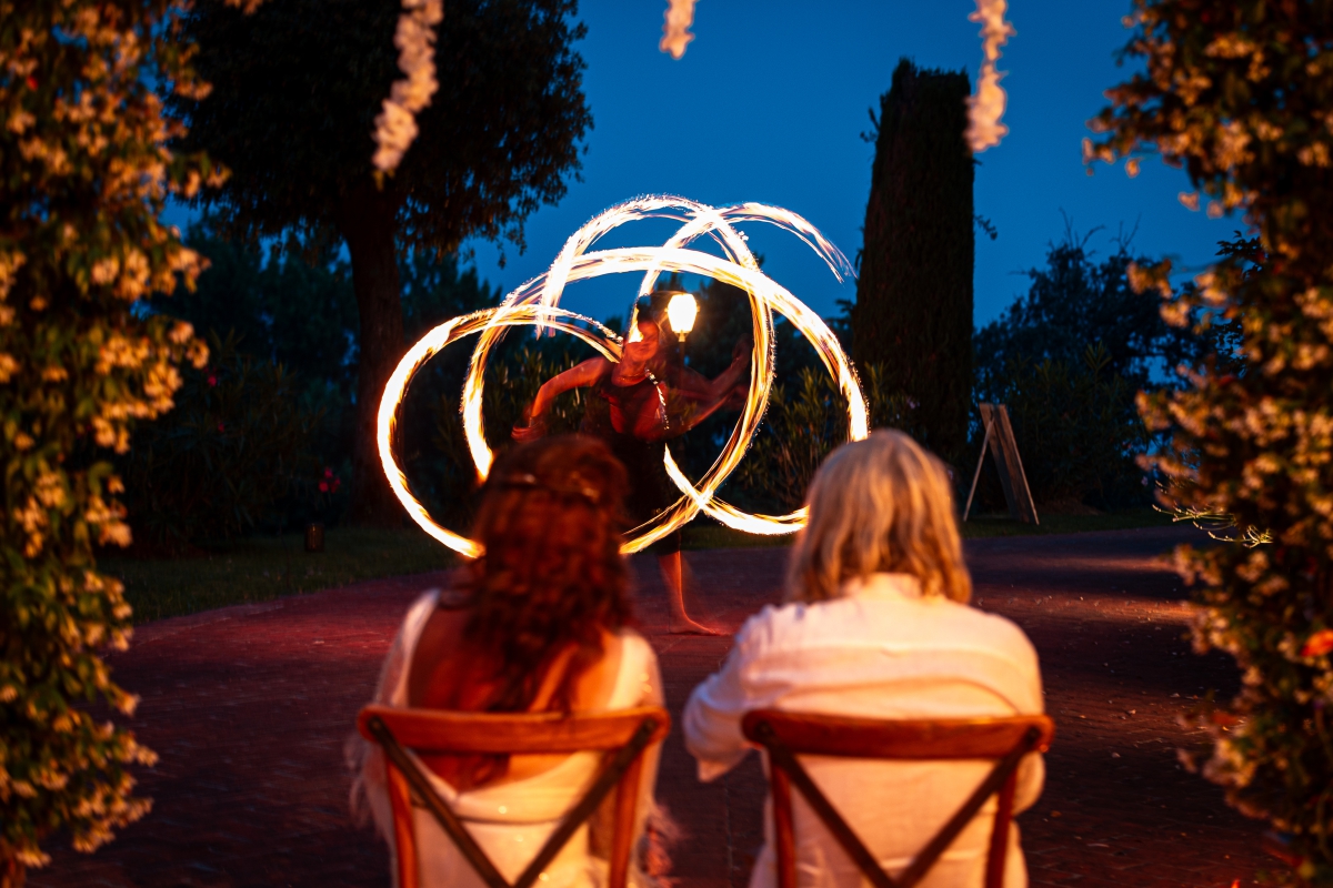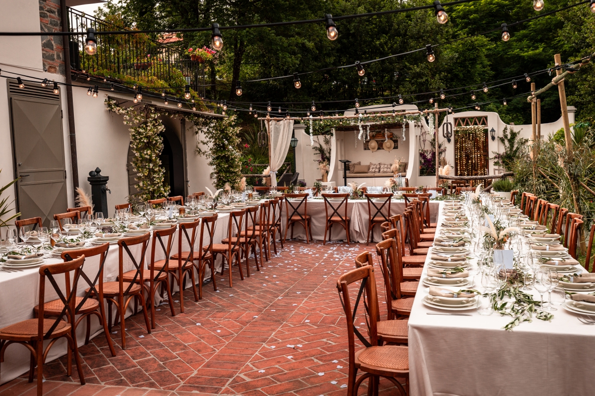 Een prachtige romantische setting met verhoging voor het aanstaande echtpaar op een magische plek waar de ceremonie zal plaats vinden. In de avond transformeren we dit terras met lange, grote rustieke eettafels voor een onvergetelijk diner onder de Italiaanse sterrenhemel. Een op maat menu met de beste, traditionele Toscaanse ingredienten zal ter plaatse worden bereid door één van de beste chef koks uit de omgeving.