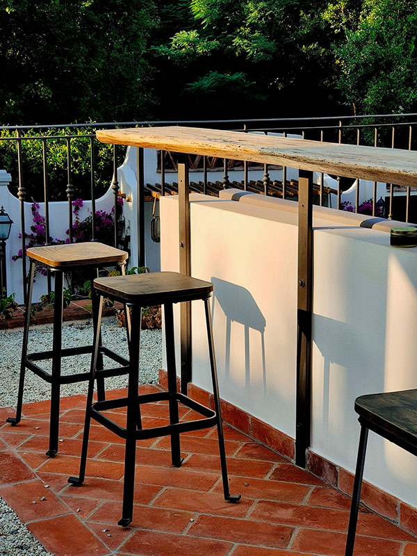 Het zonovergoten terras “The Sunkissed Grape” heeft een overdekte zomerkeuken, luxueuze zithoek en prachtige buitenbar met loungebank. Een magische plek en een absolute lust voor het oog. Het ‘Al fresco’ deels overdekt terras met lange houten eettafel is direct gelegen aan de villa. Ideaal om met familie en vrienden samen een warme zomerdag af te sluiten en urenlang na te tafelen.