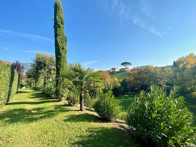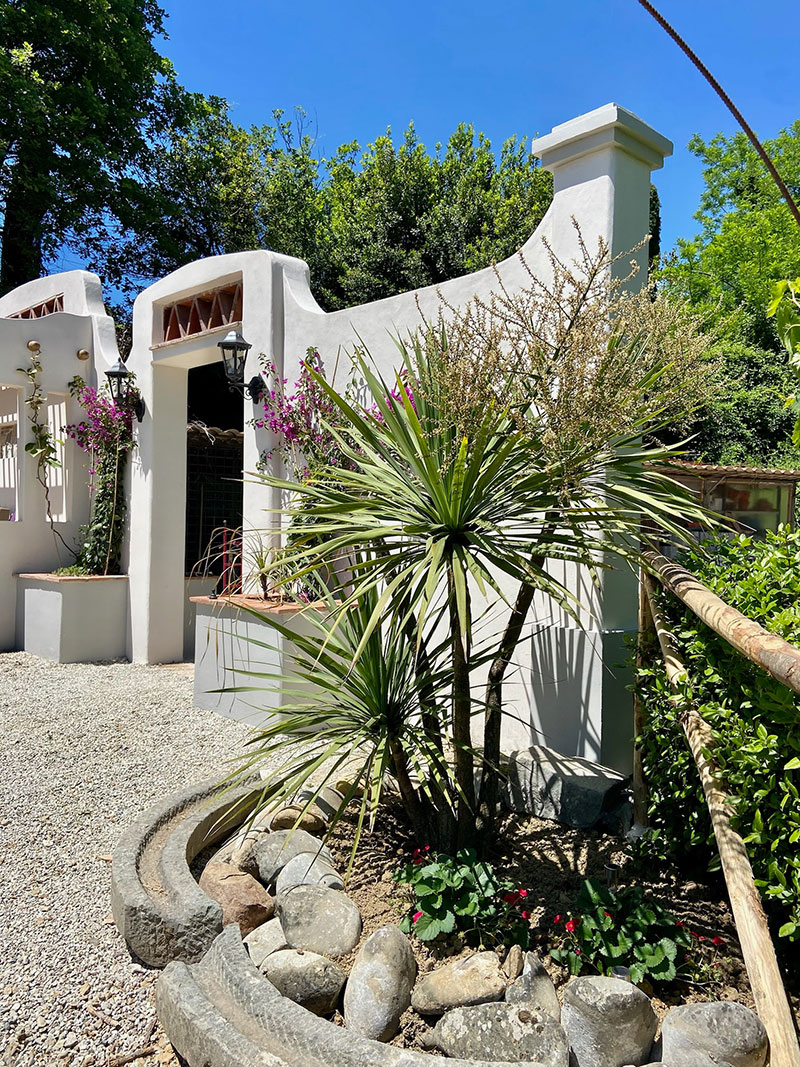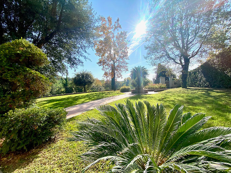 Het 12.000m2 romantische landgoed van Villa Lucida heeft een statige entree. Het klassieke smeedijzeren hek opent zich automatisch met een afstandsbediening. Op slag ben je in een uitzonderlijk mediterraans paradijs en geniet je van een prachtig uitzicht. Hoge stokoude bomen, tropische palmen, kleurrijke zacht geurende bloemen, cipressen en uitgestrekte bamboe halmen.
